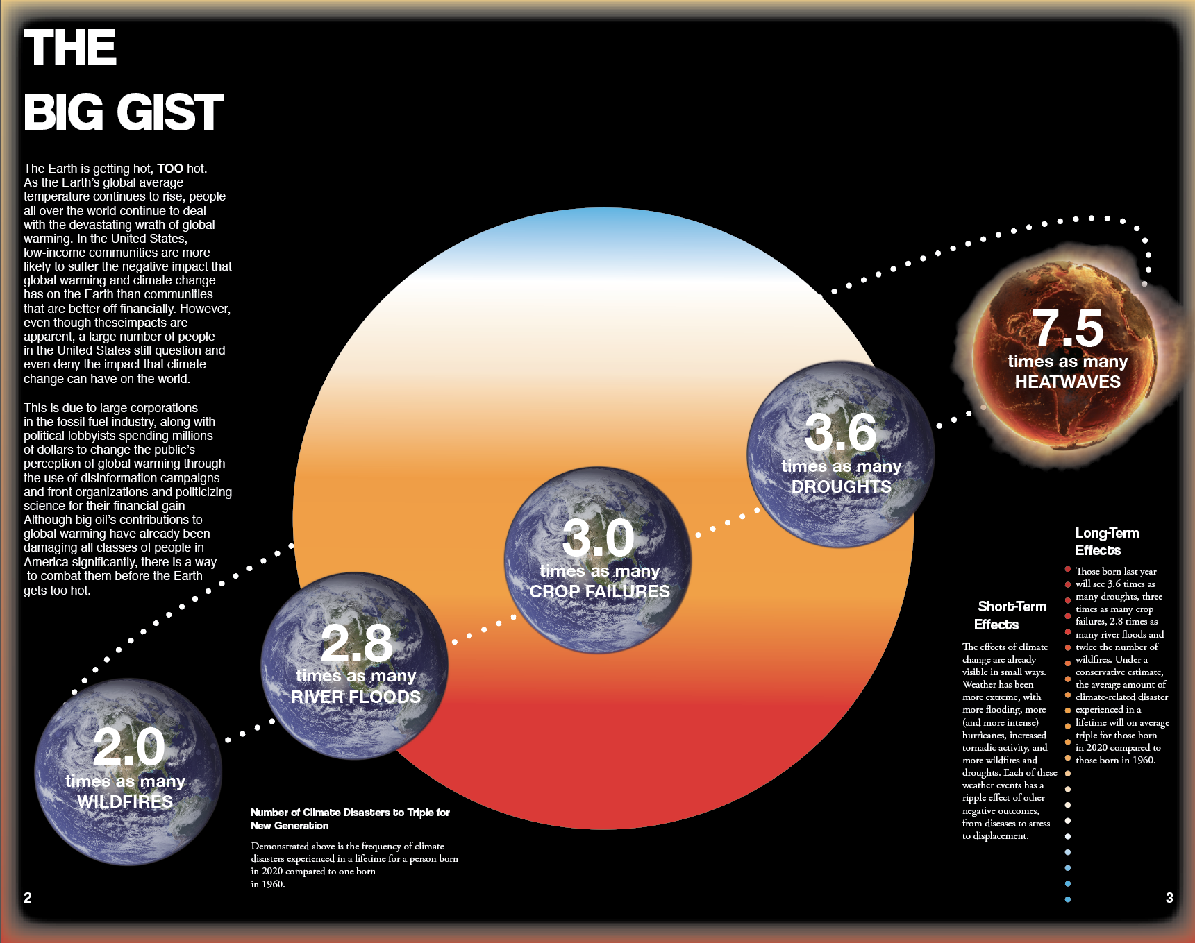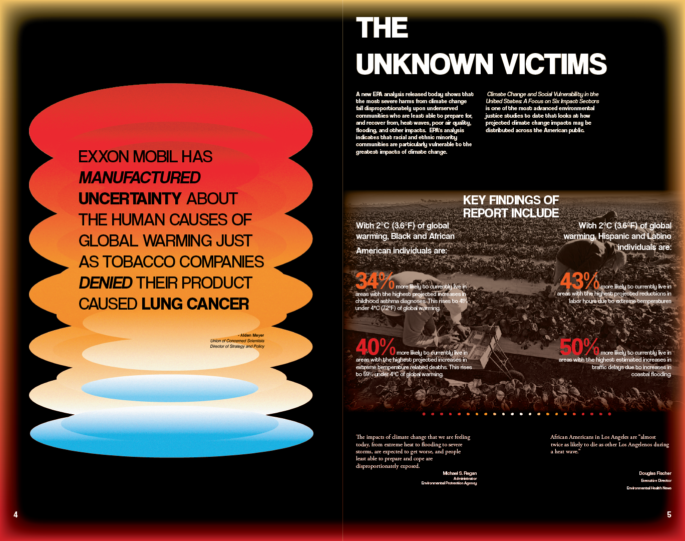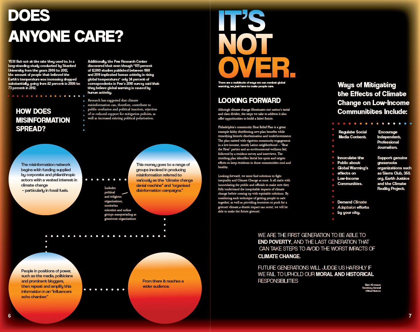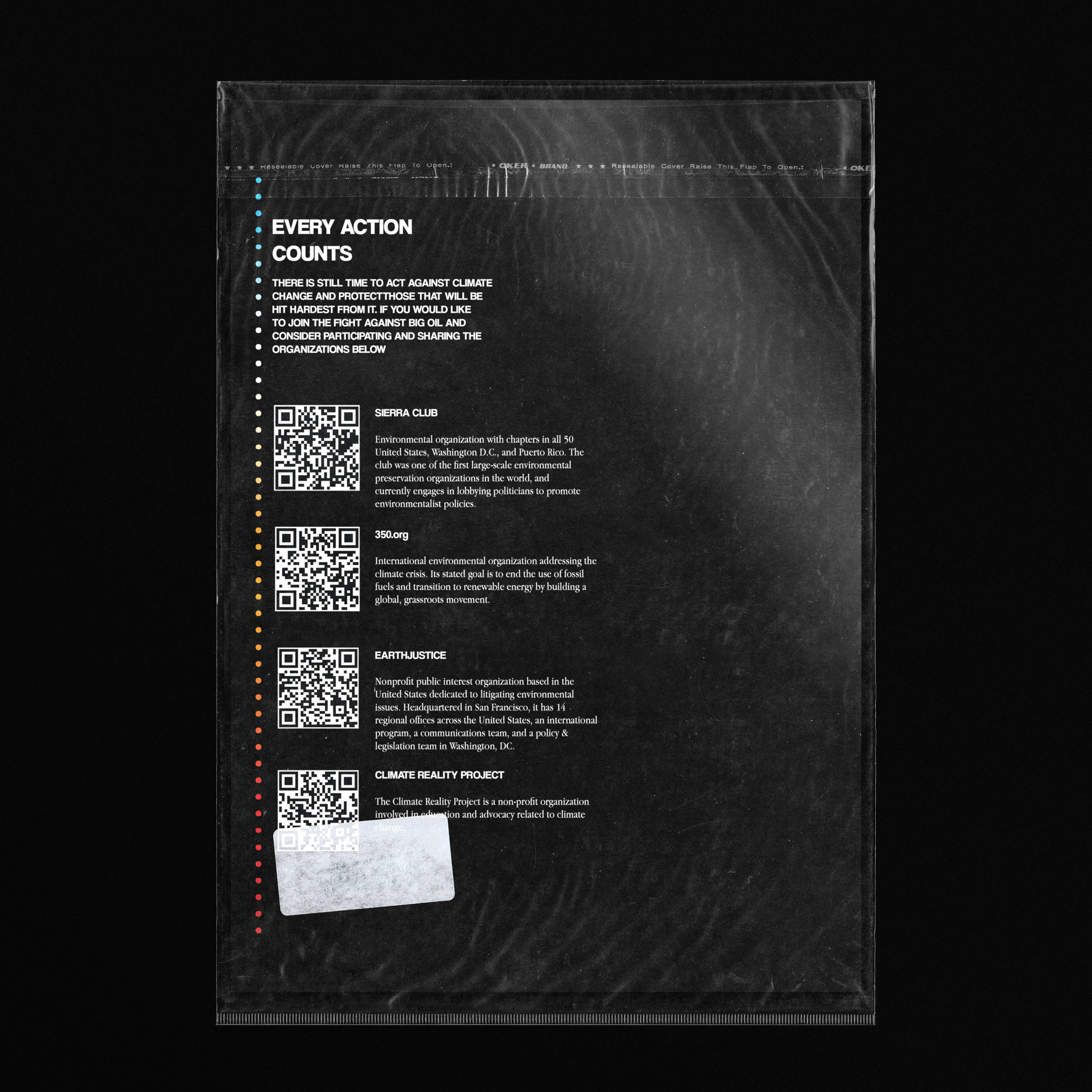 This 32” x 40” foldable 8 page spread highlights big oil’s contributions to global warming, How those contributions impact lower-income communities, and offers solutions to combating the spread of climate misinformation